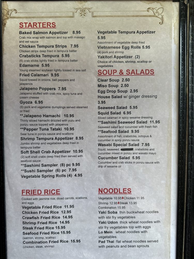 Welcome to Wasabi, a delightful sushi bar located at 2232 Bienville Blvd, Ocean Springs, MS. This unclaimed gem blends casual dining with an extensive Japanese menu, ensuring each guest feels at home. Whether you're in the mood for quick takeout or a leisurely sit-down meal, Wasabi has you covered with delivery options and outdoor seating.