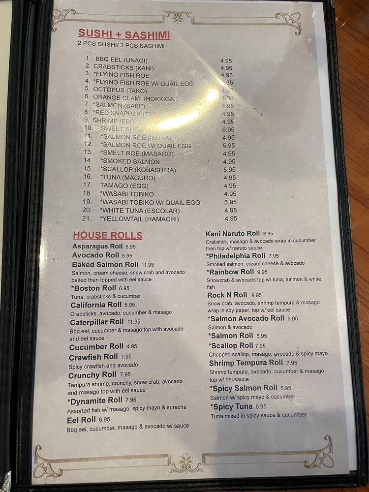 Steak, cream cheese, cucumber and snow crab topped with baked scallops, crawfish, crabstick mix, crunchy, eel sauce, spicy mayo and honey wasabi.